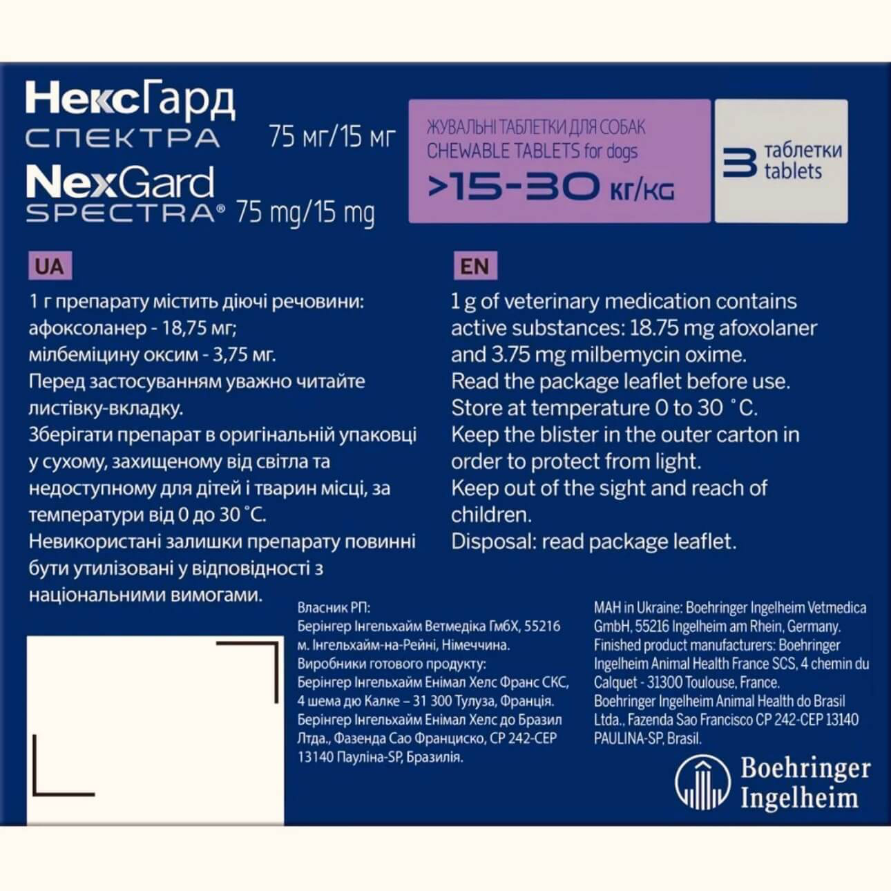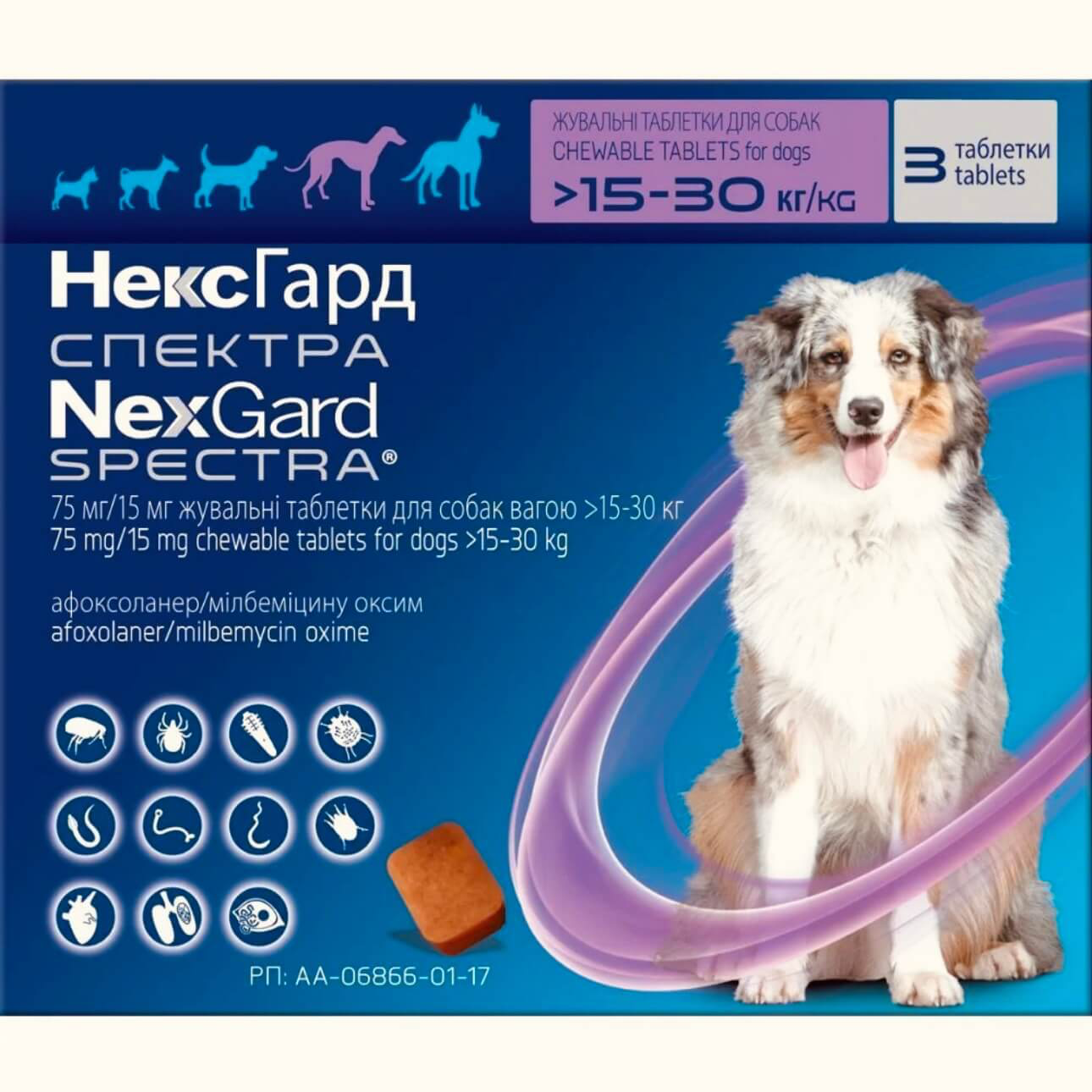 НексГард Спектра Таблетки від глистів, бліх і кліщів для собак від 15 до 30 кг