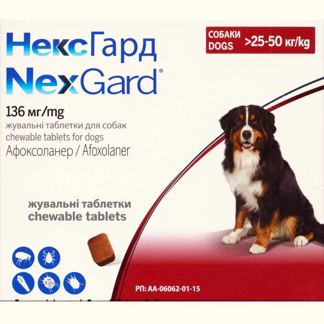 НексГард Таблетки від бліх і кліщів для собак вагою від 25 до 50 кг